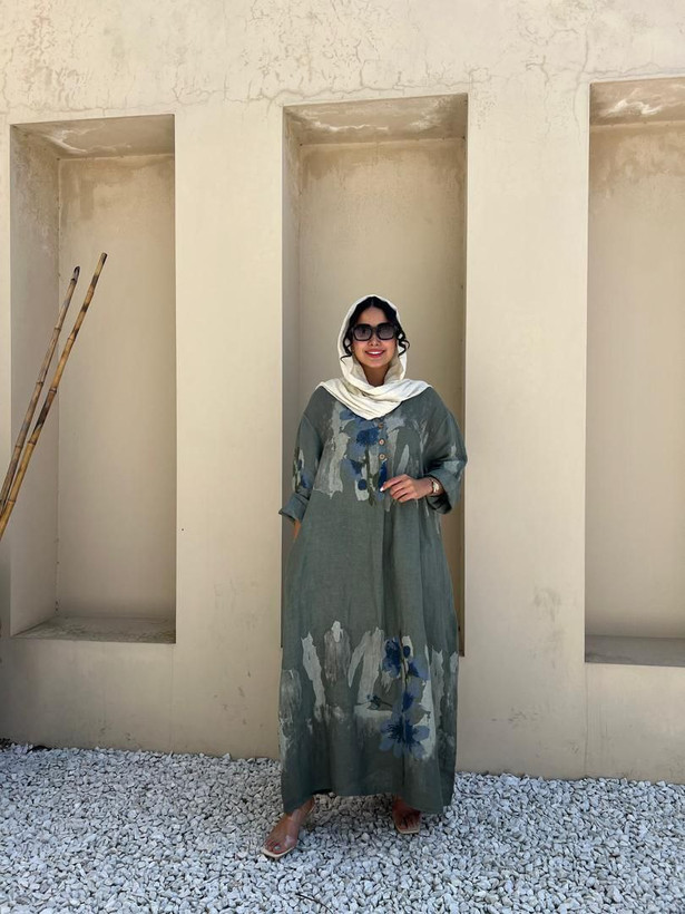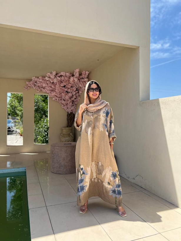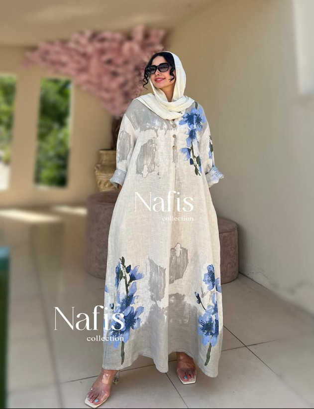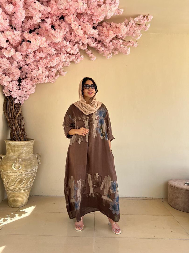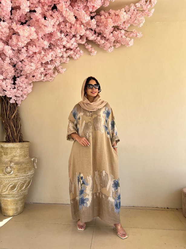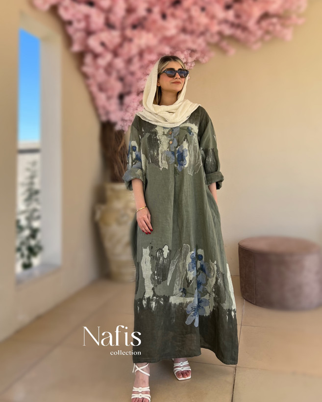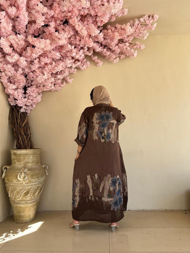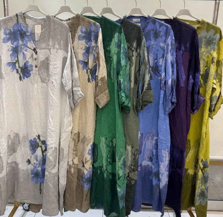 پیراهن زنانه طرح لیلیوم لینن ایتالیایی آبرنگی