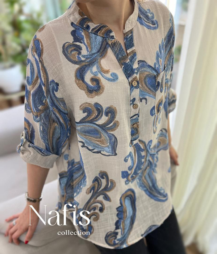 شومیز زنانه لینن گرم پایین ترمه ایتالیایی