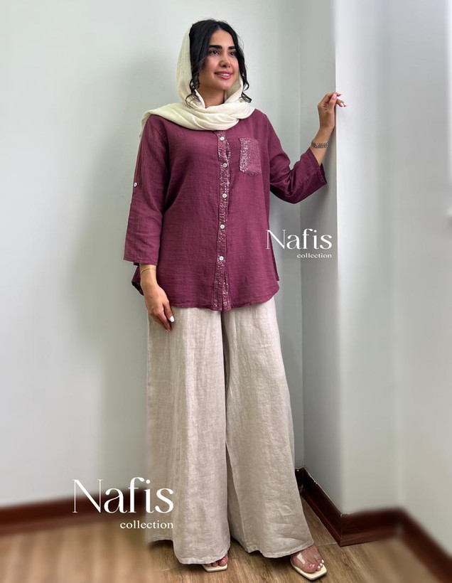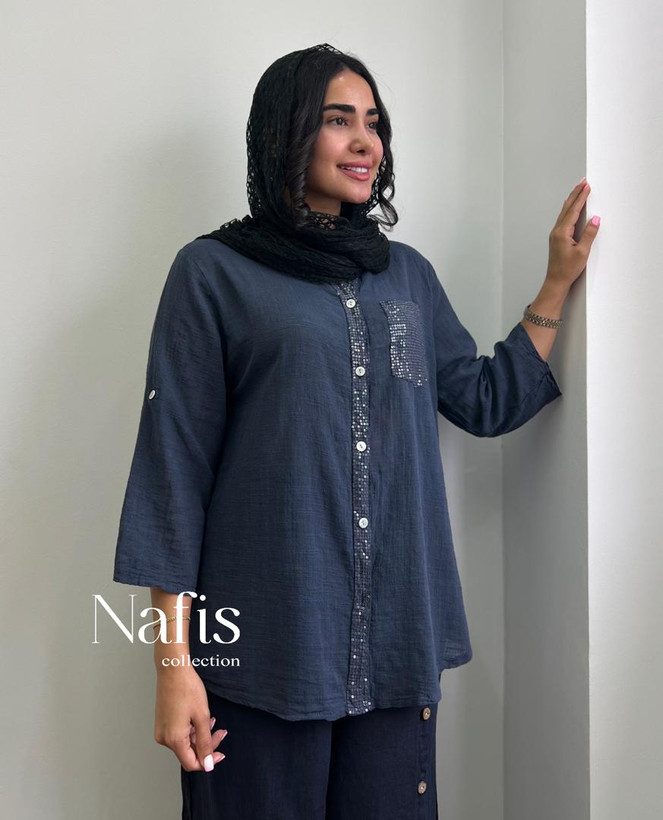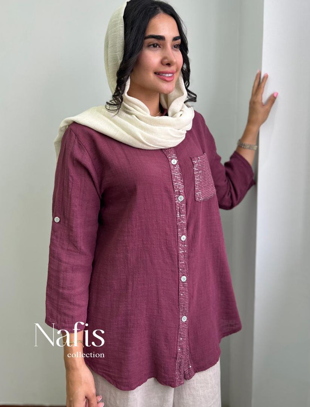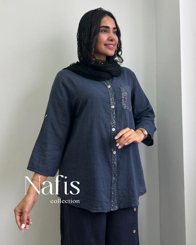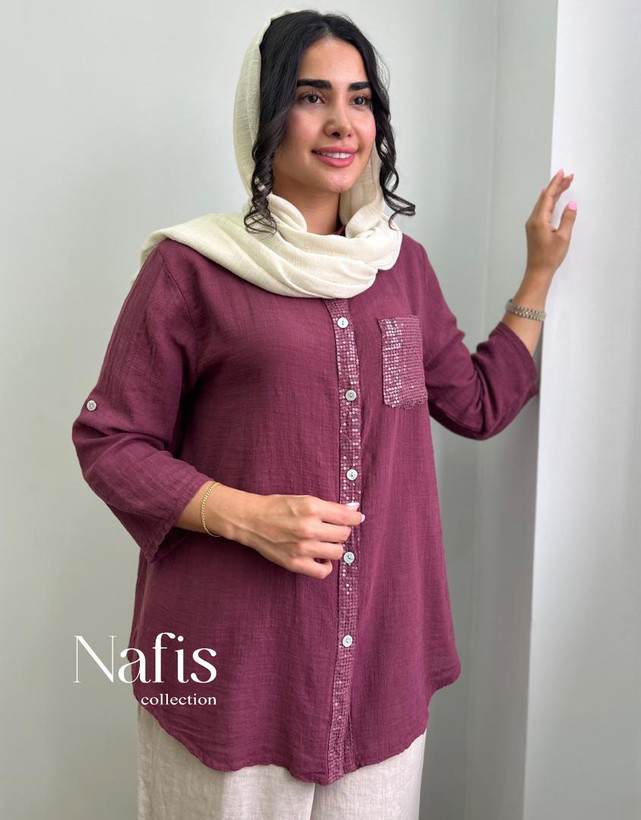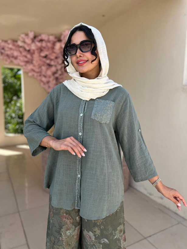 شومیز زنانه پولک دوزی لینن ایتالیایی